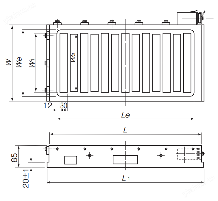 ●磁极排列将磁力集中在工件上,提供强大的夹持力。